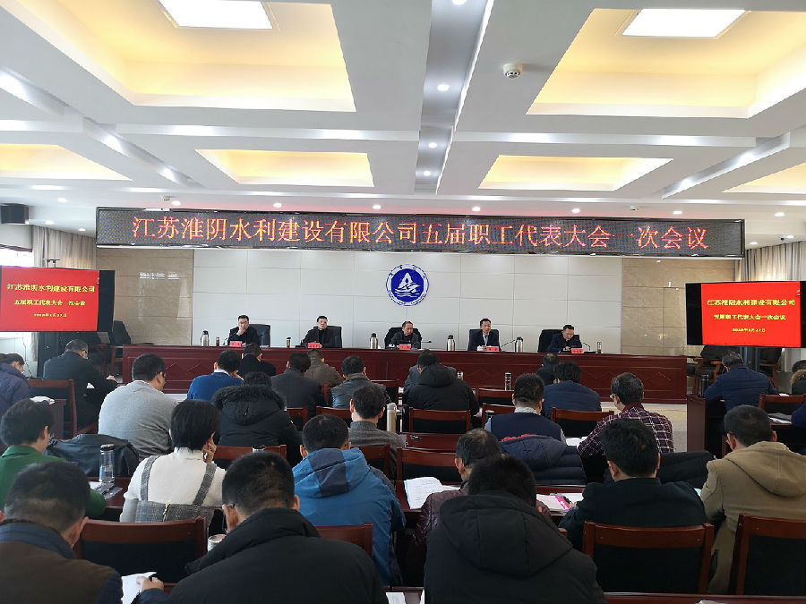 2019年1月27日下午,江蘇淮陰水利建設有限公司五屆職工代表大會第一次會議在水利大廈14樓會議室召開,公司職工代表共計80余人參加會議。會議由公司紀委書記、工會主席周杰主持,集團黨委委員、副總經理李杰、集團工會專職副主席朱剛蒞臨會議并作重要講話。